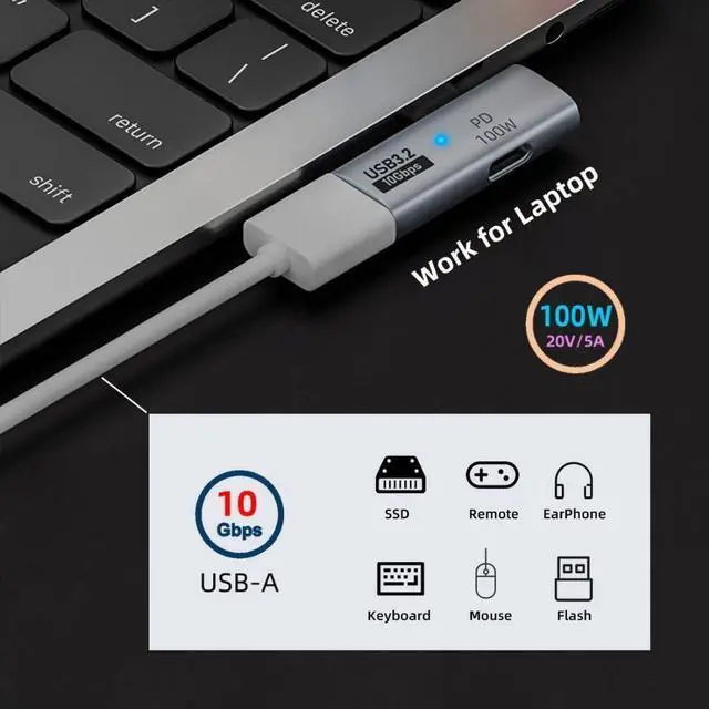 4)You can transfer USB 10Gbps data and charge the laptop/tablet/phone simultaneously.