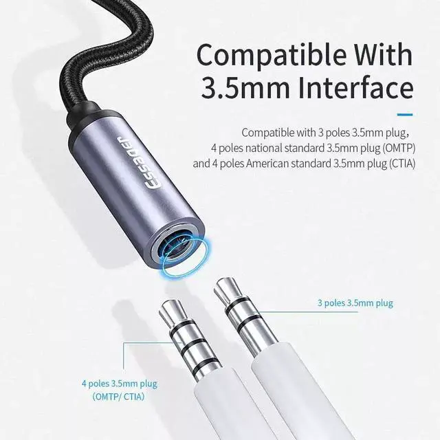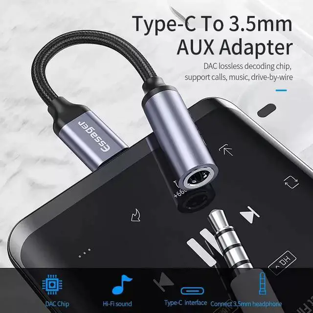 Convert your USB-C device to a standard 3.5mm headphone jack. Simply plug and enjoy your favorite wired headphones, earphones, or car AUX input. Perfect for devices that have removed the headphone port.
