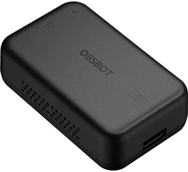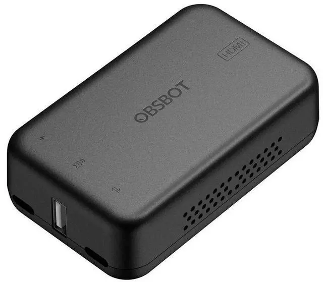 View and/or monitor the UVC output of your webcam or PTZ camera with low latency and with output resolutions up to UHD 4K60 on any display that has an HDMI input with this UVC to HDMI Adapter from OBSBOT. The plug-and-play adapter features two USB-C inputs, one for your UVC source signal and one for powering the unit, a USB-A input for working with an optional OBSBOT remote controller and USB wireless receiver (available separately), and an HDMI 2.0 output for connecting to a display. The unit comes with a 5' USB-C to USB-C cable that may be used for connectivity to your UVC source device or for power, when used with an optional 9V/2A or 5V/2A USB-C power adapter.