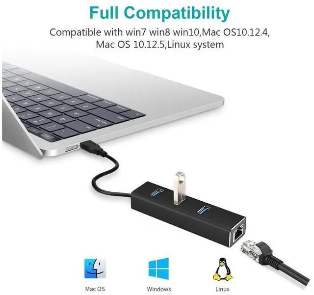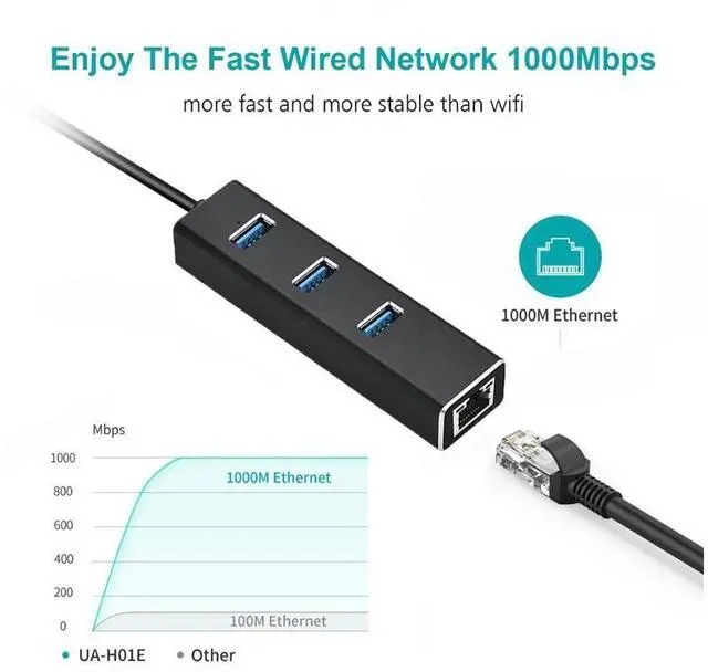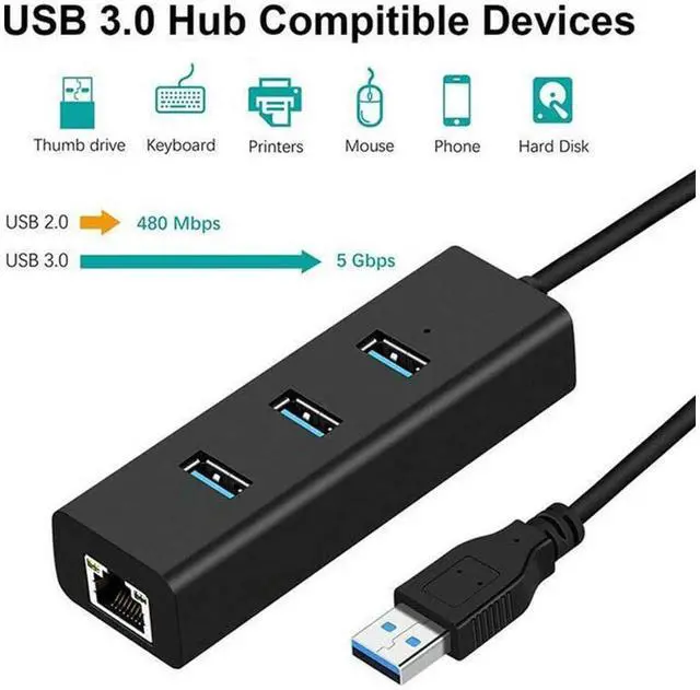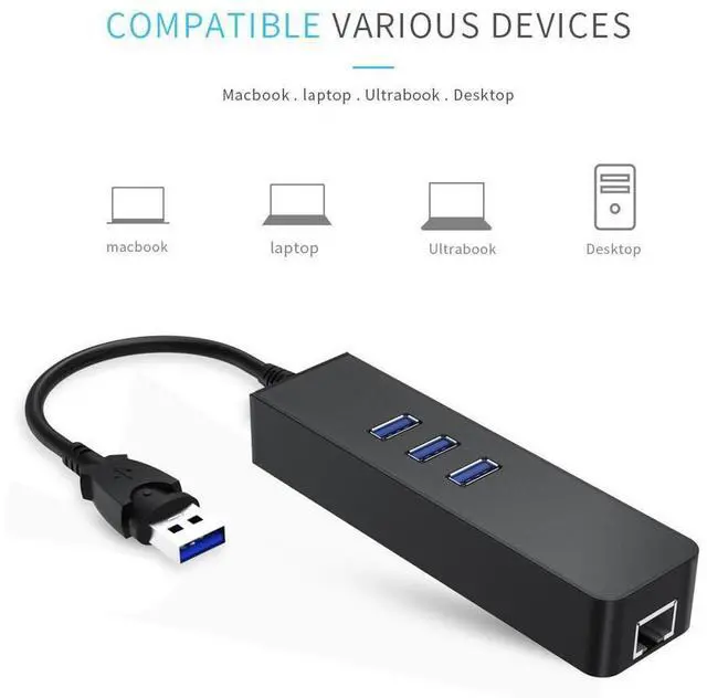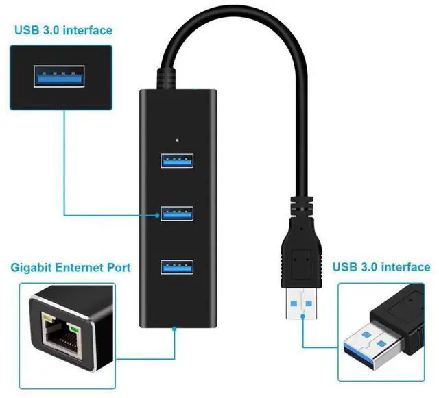 ![Alt view image 6 of 7 - [Upgraded] Network Adapter USB 3.0 to Ethernet RJ45 LAN Gigabit Adapter, 3-Port USB 3.0 Hub with RJ45 10/100/1000M Converter LAN for Ultrabooks, Notebooks, Tablets (COlor: Black) eokCXOY](https://c1.neweggimages.com/productimage/nb640/C2AGS25110507KP0A6E.jpg)