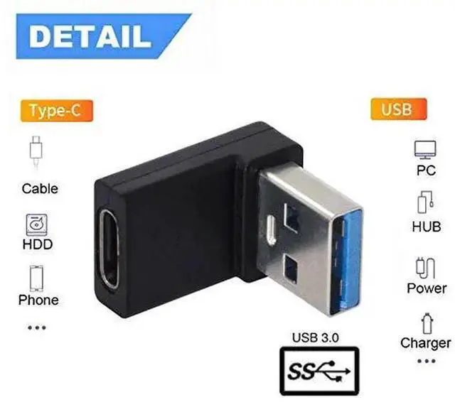 USB-C Type C Female 90 Degree Down Angled to USB 3.0 A Male Data Adapter for Laptop Desktop