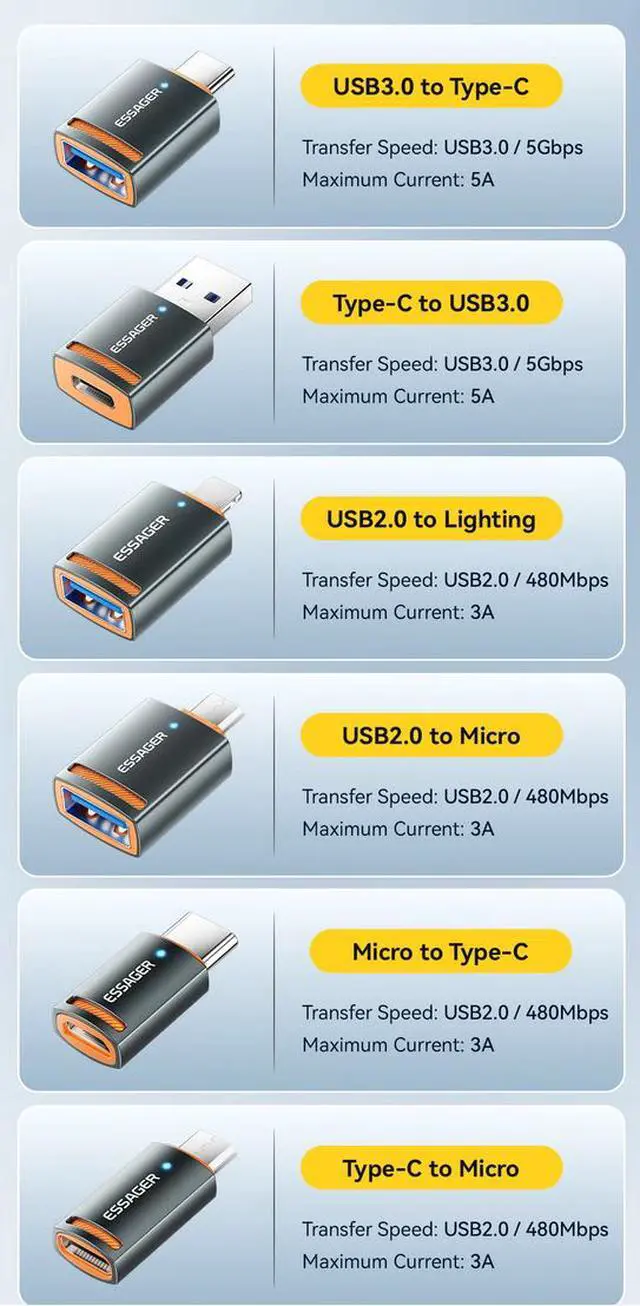 USB 3.0 High-Speed Transfer Supports data speeds up to 5Gbps, enabling fast file transfer between phone, tablet, and USB storage devices.