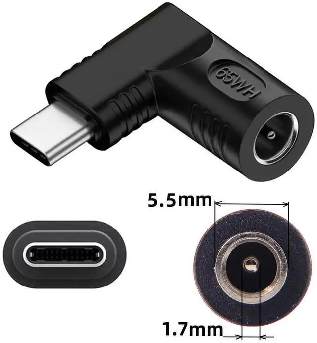 JAENFONG Adapter DC 20V Jack 5.5x1.7mm Input to USB-C Type-C Output 90 Degree Right Angled Power Plug Charge Adapter 65W