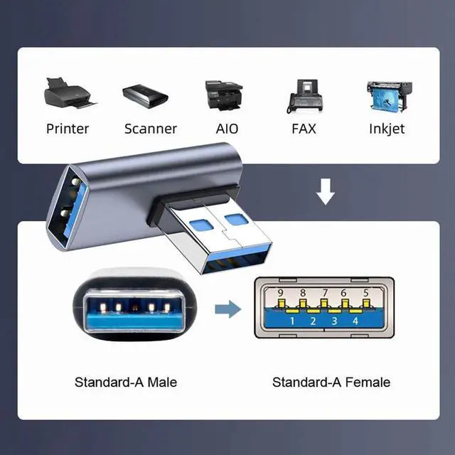 2. Angled USB 3.0 Adapter, Type A Male/Female,Support 10Gbps data transfer rating.