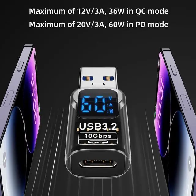 2 Pack USB to USB C Adapter with LED Display, USB C to USB 3.2 Adapter for iPhone 15/15 Plus/15 Pro/15 Pro Max, iPad Air/Pro, MacBook, Support Current, Voltage and Power Smart Display
