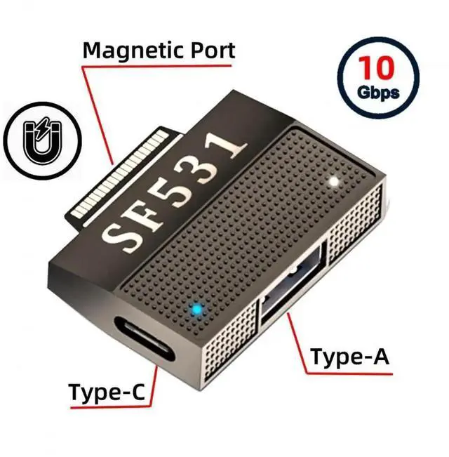 • Magnetic connector to Type-C and Type-A USB port, work for SSD,keyboard,Mouse Hub and Type-C device.Compliant with USB 3.0 Super-Speed (10/5Gbps), USB 2.0 Hi-Speed (480Mbps), USB 1.1 Low-Speed (1.5Mbps).