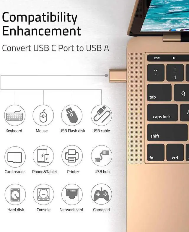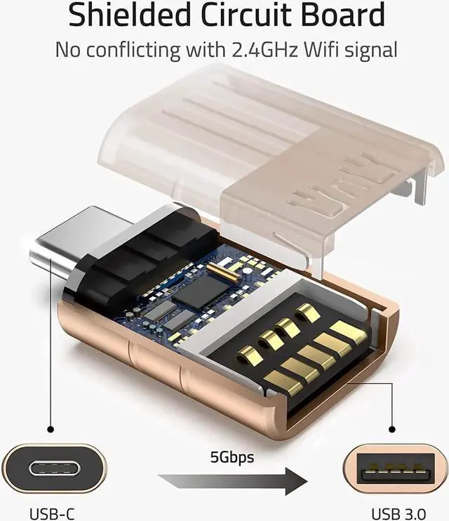 ![Alt view image 7 of 7 - JAENFONG USB C to USB Adapter [2 Pack] USB C Male to USB3 Female Adapter Compatible with iPhone 15 Pro Max iMac iPad Mini/Pro 2021 MacBook Pro Air 2023 and Other Type C Devices, Gold](https://c1.neweggimages.com/productimage/nb640/C1E6S2510110JVQQ9FA.jpg)