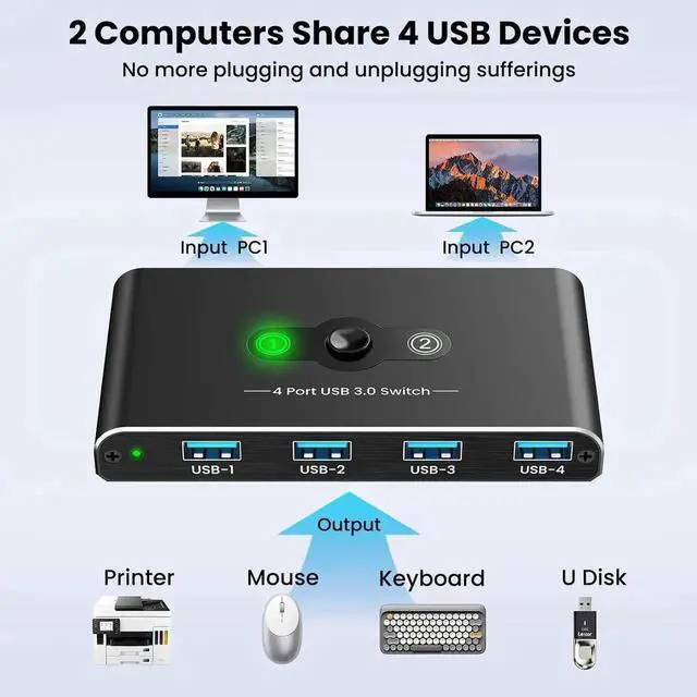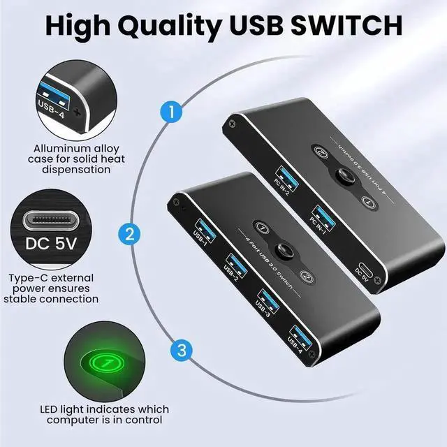 With USB 3.0 technology, you can enjoy data transfer rates of up to 5Gbps, which is 10 times faster than USB 2.0. This provides higher power supply, lower latency, and reduced jitter times. The switch is also backward compatible with USB 2.0 and 1.1. Moreover, its aluminum alloy housing and gold-plated connectors ensure durability and stability.