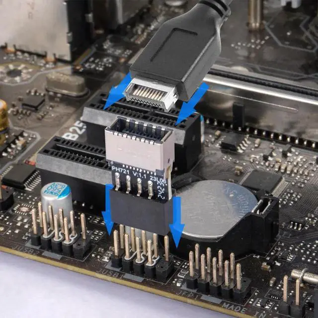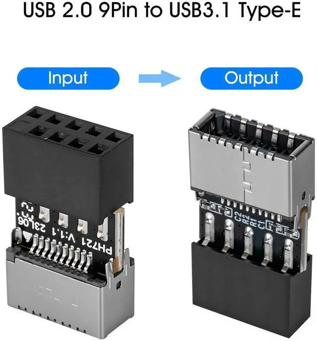 ![Alt view image 5 of 6 - JAENFONG USB 2.0 to 3.2 Gen 1 Header Adapter [2-Pack], 9Pin to Type-E (A-Key) Female Converter, Extend USB-C Front Panel Ports to Motherboard, Plug & Play, Compact Design for PC Case Upgrade](https://c1.neweggimages.com/productimage/nb640/C1E6S251204026J3GDC.jpg)