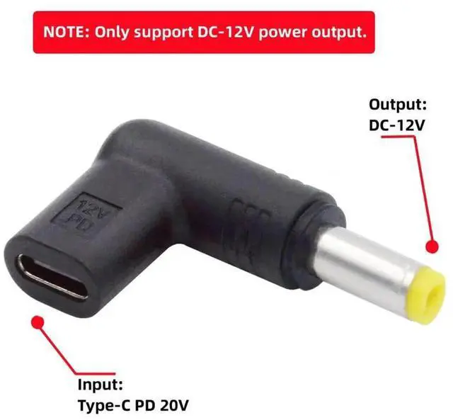 USB 3.1 Type C USB-C Female to DC 12V 5.5x2.5mm Plug Adapter PD Emulator Trigger 90 Degree Angled