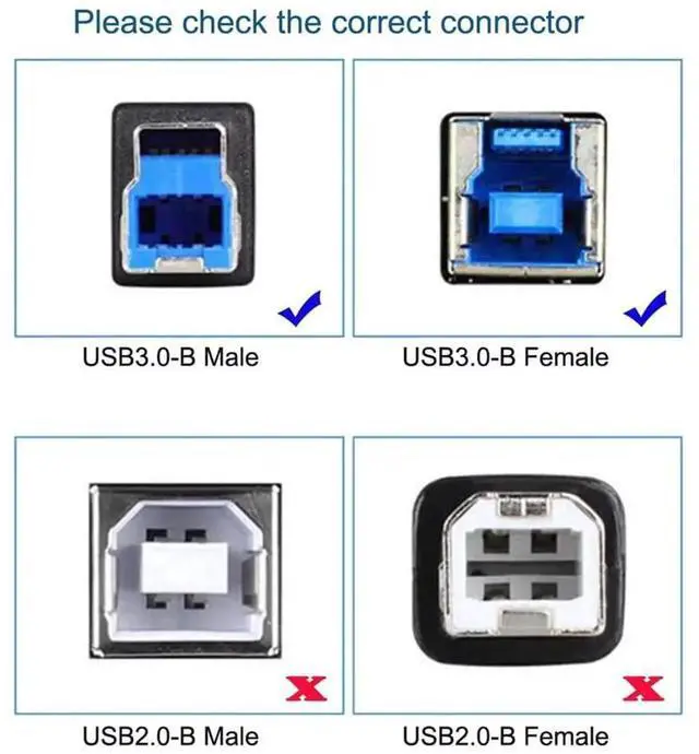 Work for USB 3.0 Type-B device like SSD Camera printer device. Not work for USB2.0 Type-B port.