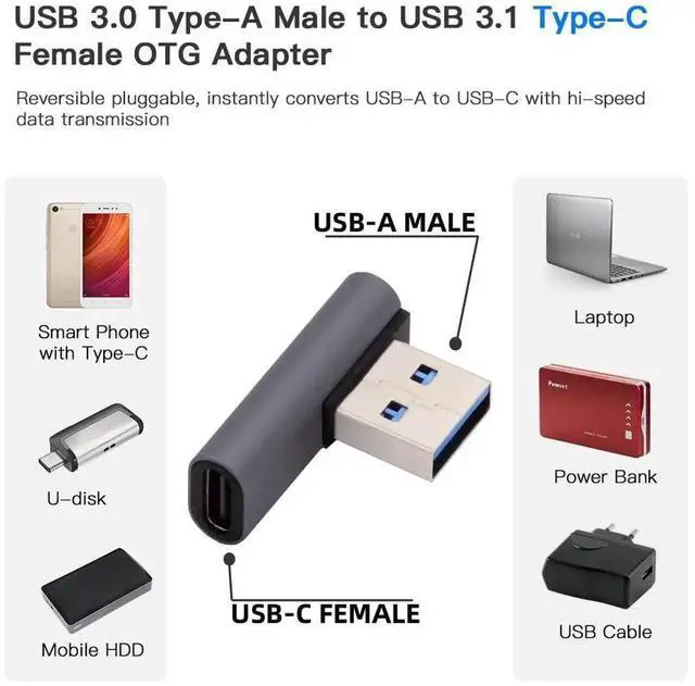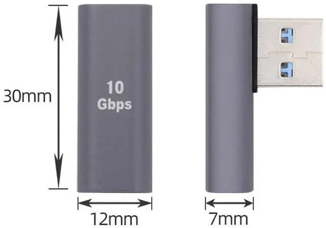 USB-C Type C Female Low Profile 90 Degree Left Angled to USB 3.0 A Male Data Adapter for Laptop Desktop