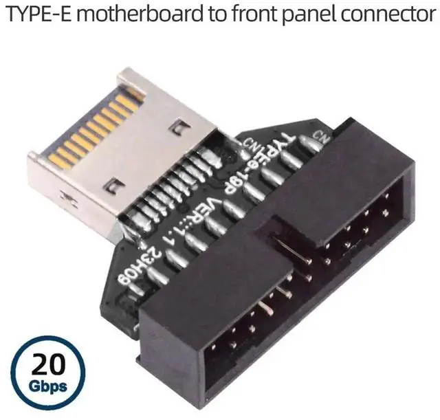 The Type-E adapter is a converter to convert the available USB 3.1 header of a motherboard into a USB 3.0/20pin header.