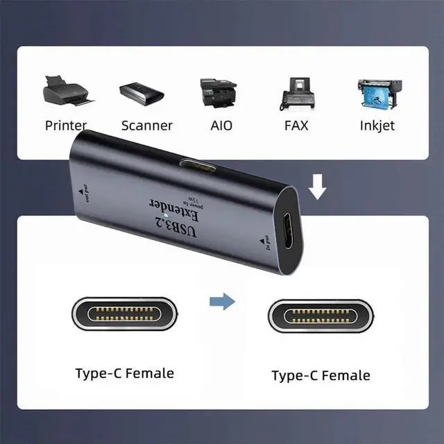5Gbps USB 3.0 Active Repeater Extender Type-C Female to Type-C Female Signal Amplifier Adapter with Chipset for Camera Printer Computer