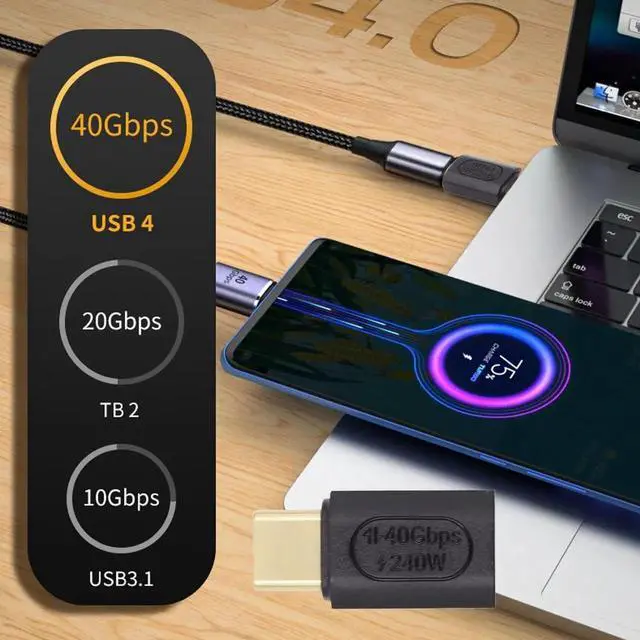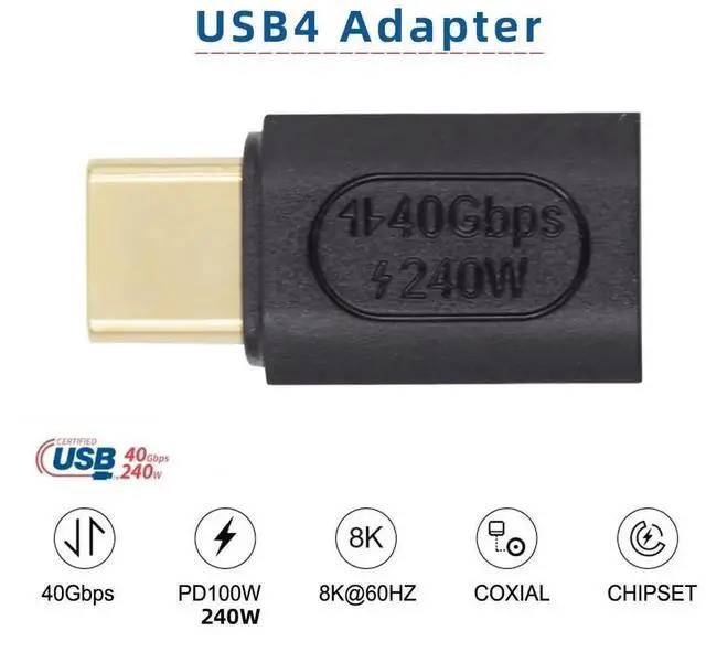 USB4 Type C Male to Female 240W Power 40Gbps Data 8K Video Adapter for NS Phone Laptop