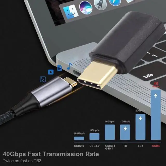 Reversible plug orientation Cable direction. Support 40Gbps data transfer rating.