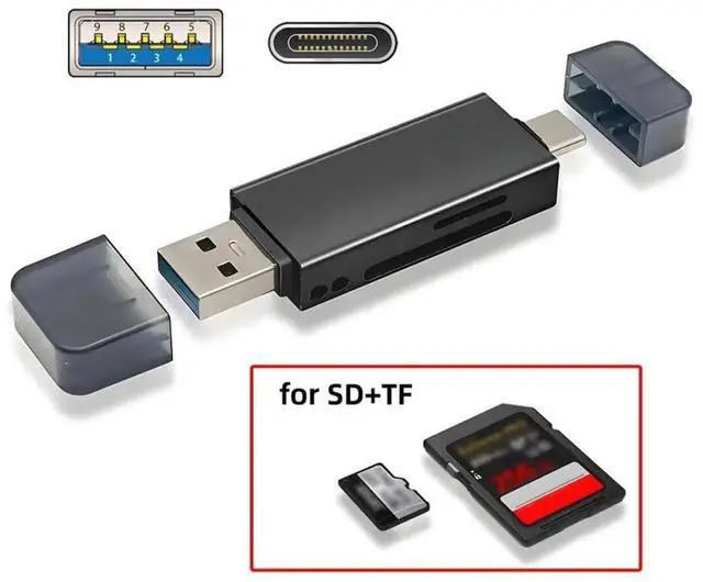 USB 3.0 & Type-C to TF T-Flash Card & SD 2-in-1 Card Reader Writer for Camera & Laptop & Tablet & Mate Serial Phone
