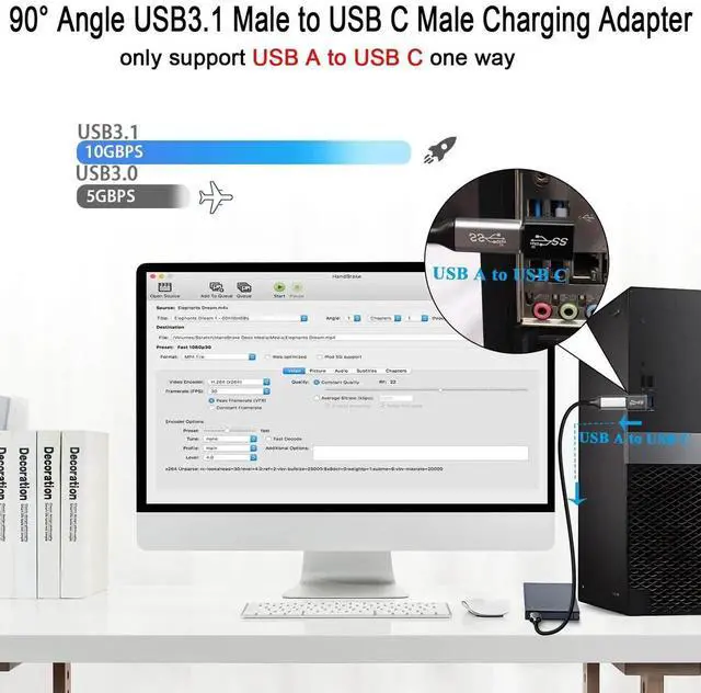 90° angle USB3.1 male to USB C male converter 90° angle USB3.1 male to USB C male converter plug to convert device USB port output to USB C output for Wall charger, cell phone, PC, laptop, Power Bank.