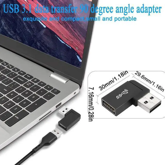 90 degree angle USB 3.1 male to female L-shaped connector adapter. Keeps the cable close to your PC, laptop and prevents damage caused by bending the cable, extending the life of the cable. Easily extends to protect the ports of your PC, laptop, tablet, mobile power or other USB devices. 10Gbps USB 3.1 male to female 90° angle adapter. Support OTG expansion function, let your tablet easily external auxiliary devices, such as joystick, mouse, keyboard, etc.