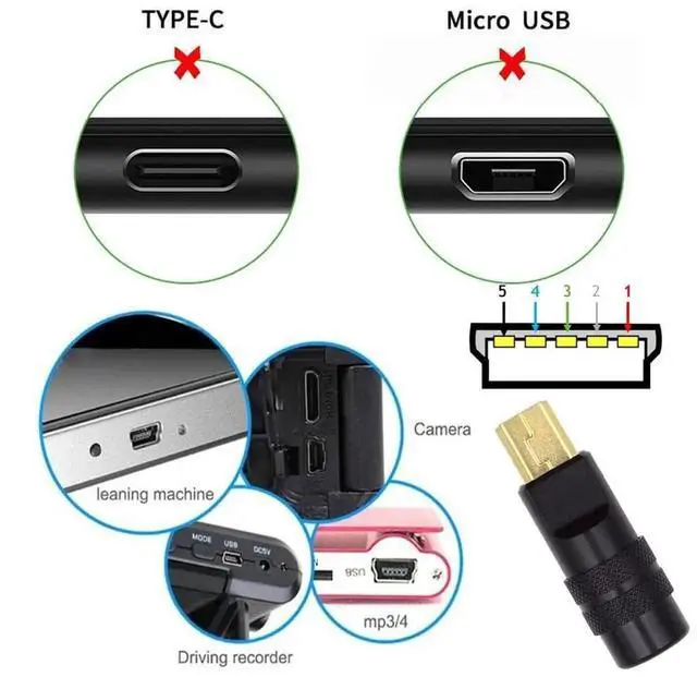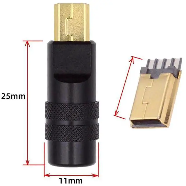 USB2.0 Plug Solder Connector Mini 5Pin Male Replacement Adapter with Aluminum Alloy Shell Black Customization for 4.0mm~6.0mm Cable