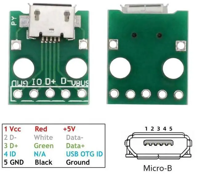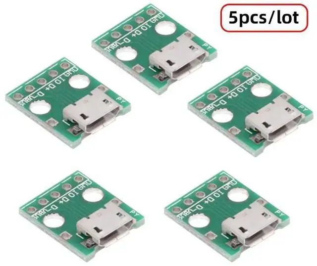 DIY OEM USB2.0 Micro-B Female Receptacle Socket Connector with Flange PCB Assembly Solder Type 480Mbps 5pcs/set