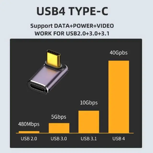 USB4 Type C Male to Female 240W Power 40Gbps Data 8K Video Adapter Low Profile Up Down Angled for NS Phone Laptop