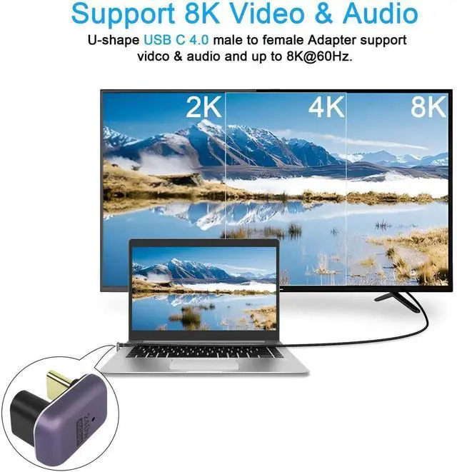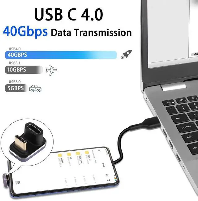 USB4.0 C Type U adapter, 180 degree USB C male to female adapter extender, places the Type C cable on the back of your device. Free up space for your fingers to move around, so you can control games with abandon and get MVPs with ease. suitable for Type C devices such as Nintendo Switch, laptops, tablets and mobile phones. Transfer rate of 40Gbps and support for 8K60hz audio and video transmission. Supports high power fast charging of up to 240W. Provides higher power support for high performance laptops or other devices.