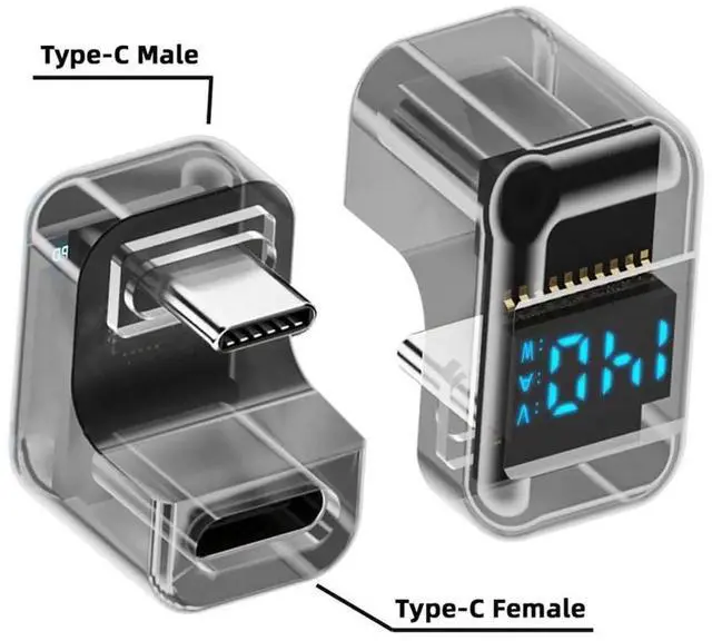 USB-C Male to Female Type-C Smart LED Display Extension Adapter USB4.0 40Gbps 140W Opposite U Shape Back Angled Current Voltage Monitoring
