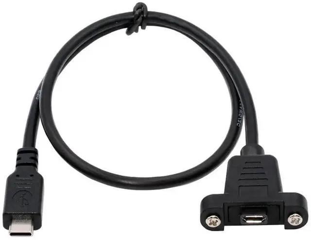 Micro USB to USB-C Cable: Connector A: Micro USB2.0 Female Dual Screw-Lock Panel Mount, Connector B: USB Type-C Male. Cable length: 1.6FT/50CM.