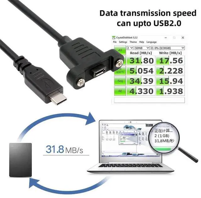 Fast Speeds:Offers a throughput of up to 480Mbps when used with a Micro USB2.0 host and USB-C device.