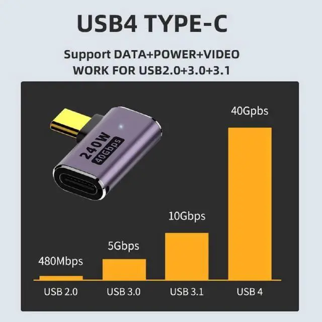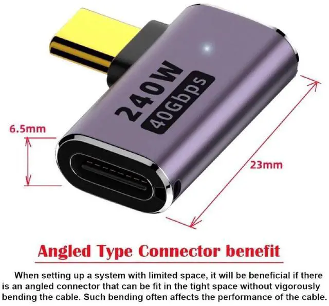 • USB4 240W 40Gbps 8K 60Hz Adapter ,USB4 Type C Male to Female 240W Power 40Gbps Data 8K Video Adapter Low Profile Up Down Angled for NS Phone Laptop