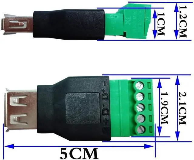 FeaturesDIY USB 2.0 A Female to 5 pin (way) Bolt Screw Terminal Pluggable Type Block Connector(USB to screw teminals