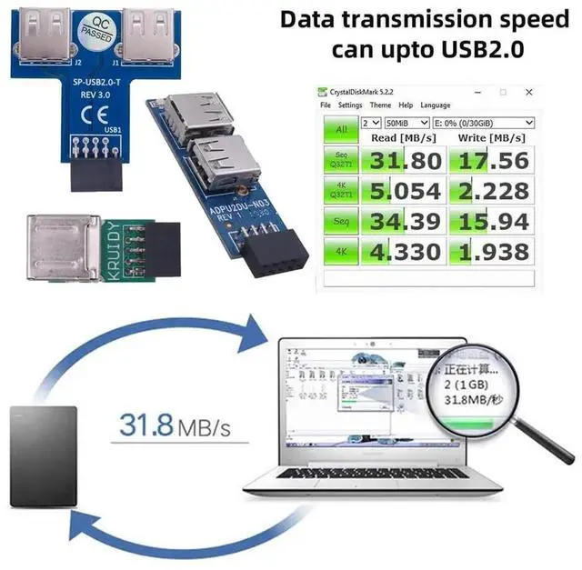 You can convert the 9pin motherboard internal port to usb 2.0 device. Used to connect USB cables or adapter in tight fit applications.