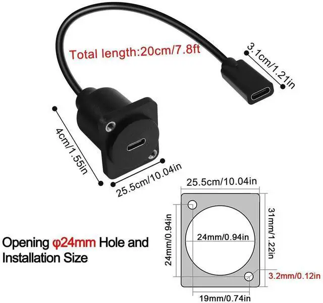 The 10Gbps 100W USB C female to female short cable panel mount receptacle easily enables USB C input/output configurations, providing easy access to USB C 3.1 ports to extend them to where you want them for charging or data transfer. It is designed based on standard XLR panel / D-type panel mounting dimensions and can be installed open or concealed in equipment cabinets, equipment panels, walls, desktops, floor plugs. It is used as a connection port for office, smart home, automobile, automated smart devices and weak power projects to connect smart phones, laptops, tablets or other USB C devices. Port A:USB C Type C 3.1 female