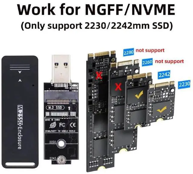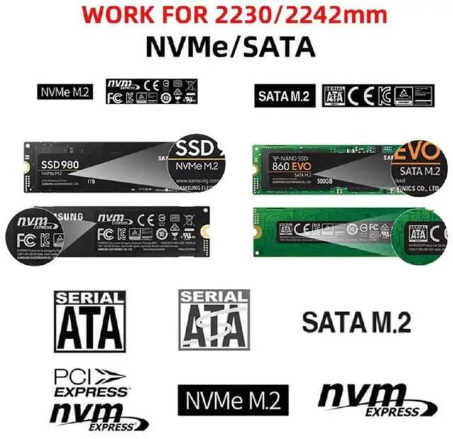 Work for M-key NVME and B/M-key SATA SSD with 2230/2242 size.