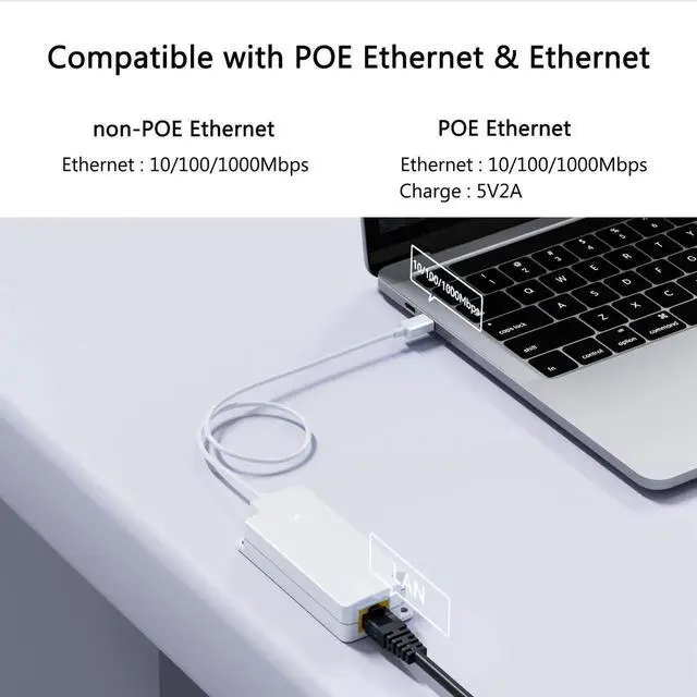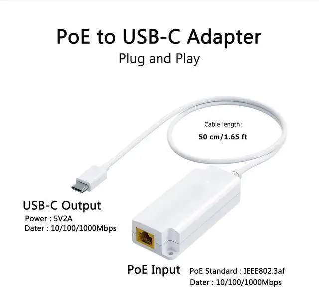 Gigabit PoE to USB C Converter for Smart Phone/Tablet, USB-C to Ethernet Adapter with 10W Charging, Power & Data 2-in-1 RJ45 Port to Type-C Adapter, 10/100/1000Mbps High Speed Plug & Play, IEEE 802.3 af
