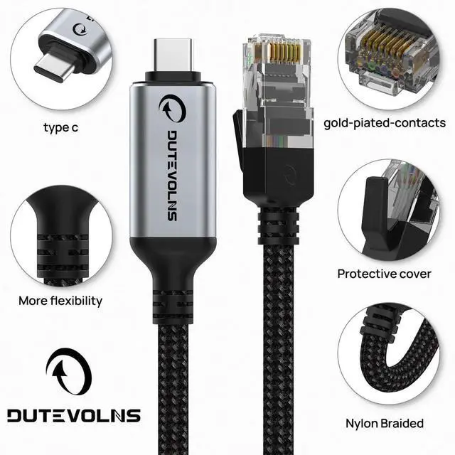 High quality materialsDutevolns USB-C to LAN Cable uses pure copper wire for faster and more stable transmission, The type-c end uses high-quality aluminum shell with excellent texture and feel, The nylon woven material also makes