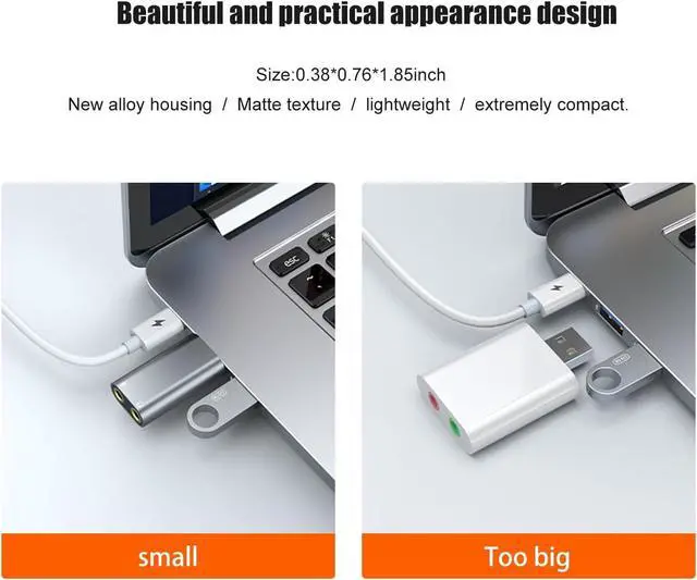 [Beautiful and practical appearance design] To avoid affecting the use of other USB ports, we have designed the appearance of this usb to aux adapter adapter to be slender.Size:0.38*0.76*1.85inch.