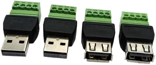 4Pack USB Male & Female to 4 Pin Screw Terminal Solderless Bolt Screw Terminals Converter Charging Adapter