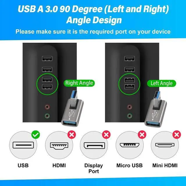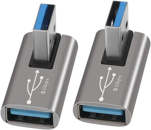 90 Degree USB 3.0 Adapter 2 Pack, Middle (Left and Right) Angle USB-A Male to Female Connector USB L Shape Extender, Support Charge & Data Sync for PC, Laptop, Mouse, Keyboard, USB A Car Charger