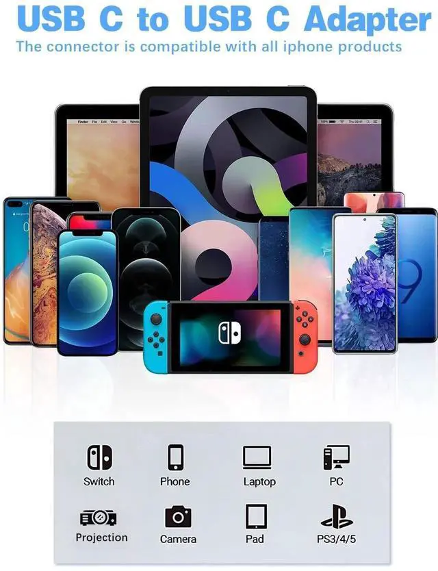 Widely compatible: This USB-C 90 degree adaptre is designed for most Type-C devices. The USB-C to USB-C adapter is compatible with iPad, MacBook, Thunderbolt 5, Thunderbolt 4/3, MacBook Pro, Chromebook, Surface Book, USB-C hubs, Google Pixel, game consoles, hard drives for PD fast charging, etc.