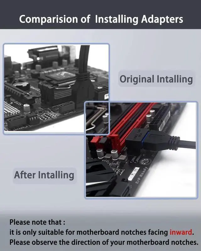 1. The adapter was only designed for USB 3.0 20 pin/19 pin port to improve the connection between your motherboard and PSU.