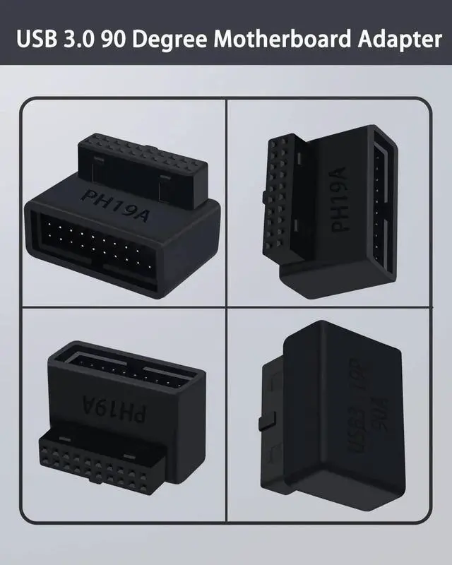 USB 3.0 90 Degree Motherboard Adapter is designed to provide a convenient solution for changing the installing direction of USB 3.0 20 pin cables with the 90-degree L-Turn right angle adapter.