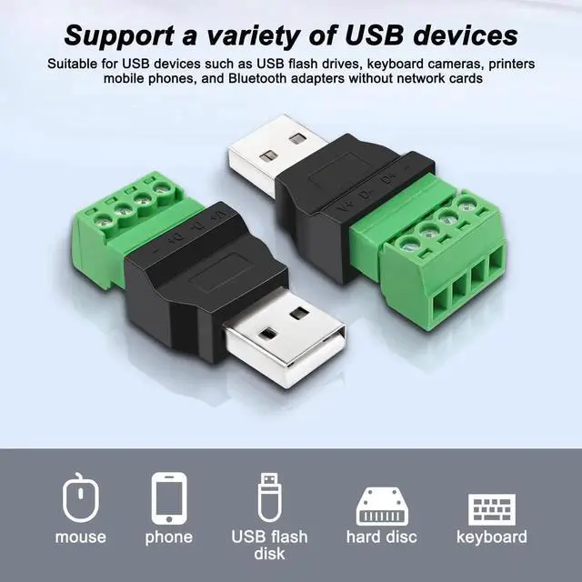 1. Convert the USB signal into a 4-pin green terminal without welding.