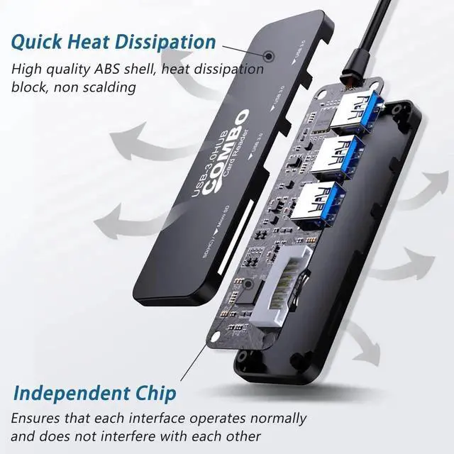 [Superspeed Data Transfer]: This USB 3.0 Data Hub faster performance to support the transmission of large amounts of data in seconds ,high speed data transfer up to 5 Gbps, save your time and no losses of connection. Also backwards compatible with USB 2.0/1.1/1.0.