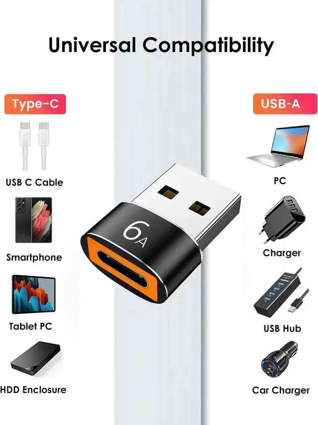 Pack of 4: USB C Female to USB A Male compatible with usb c cables usb c headphones usb c flash drives usb c card readers and other computer peripherals. This USB C adapter converts a USB-C port to a regular standard USB port at any time and you will find it so handy. Plug-and-Play it supports up to 6A fast charging (Upgraded) USB C to USB A 2.0 480 Mbps data transfer speed USB OTG (On-The-Go) function. Please note that it does not support HDMI VGA DP and other video signal transmission. You can keep one at home one at the office and one in the car to meet the needs of different occasions. If you only have a USB-C to USB-C cable or USB-C to other ports cable then with the help of this little USB C to USB adapter you can easily charge your mobile devices and transfer data quickly in any occasion. USB C to USB A