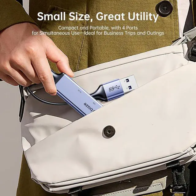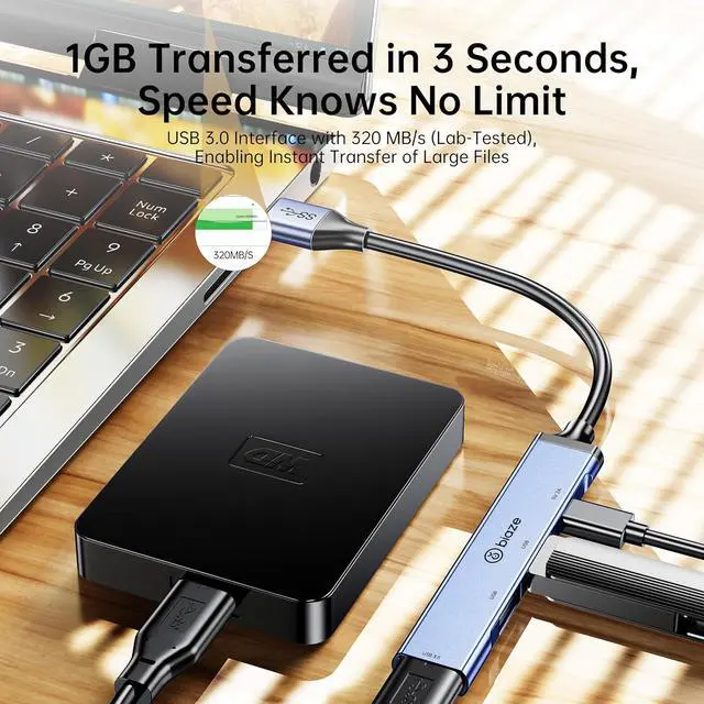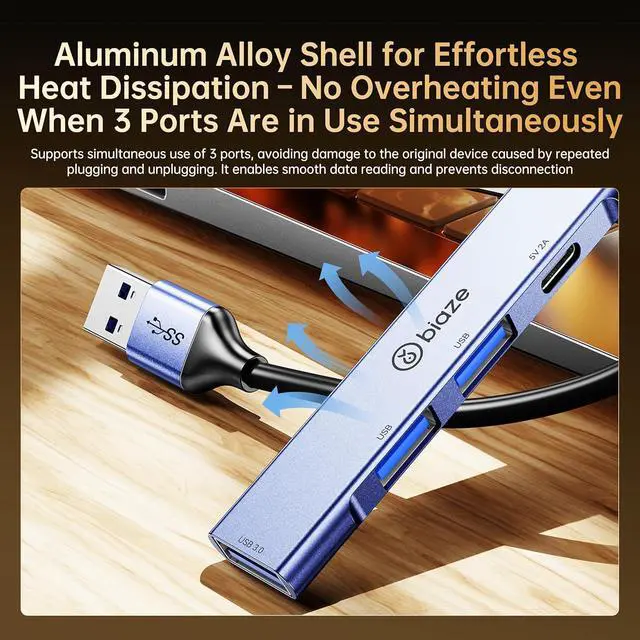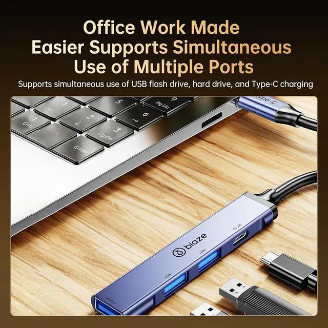 JVFYI USB 3.0 4-Port Hub with Dedicated 5V/2A Type-C Power Adapter | Stable External Power Supply | High-Speed 4-in-1 Hub for Laptops, Desktops, and Hard Drives, Featuring USB 3.0 High-Speed Transfer