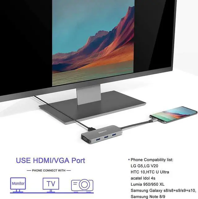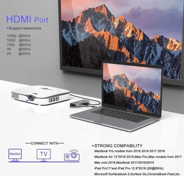 USB-C To HDMI Adapter 4K: Mirror or extend your screen with USB C Hub HDMI port and directly stream 4K UHD @ 30Hz or Full HD 1080p video to HDTV, monitor or projector