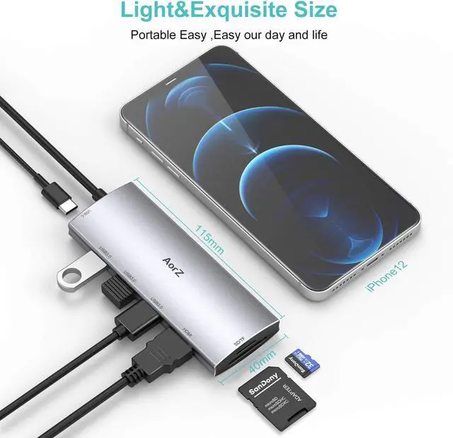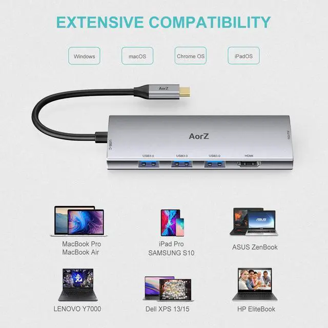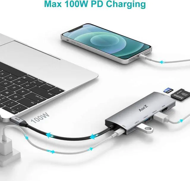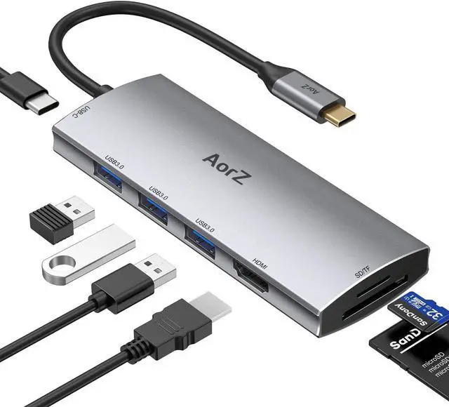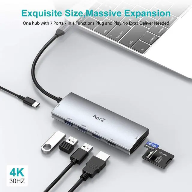 USB C Hub, USB Hub to HDMI Multiport AorZ USB C Dongle Adapter 7 in 1 with 4K HDMI Output,3 USB 3.0 Ports,SD/Micro SD Card Reader,100W PD,Compatible with MacBook Pro Air HP XPS and More Type C Devices