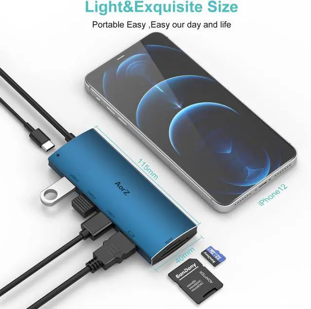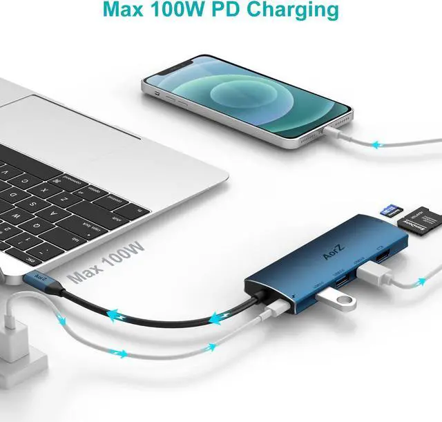 USB C Hub, USB Hub to HDMI Multiport AorZ USB c Dongle Adapter 7 in 1 with 4K HDMI Output,3 USB 3.0 Ports,SD/Micro SD Card Reader,100W PD, Compatible with Macbook,XPS and More Type C Device(Deep Blue)